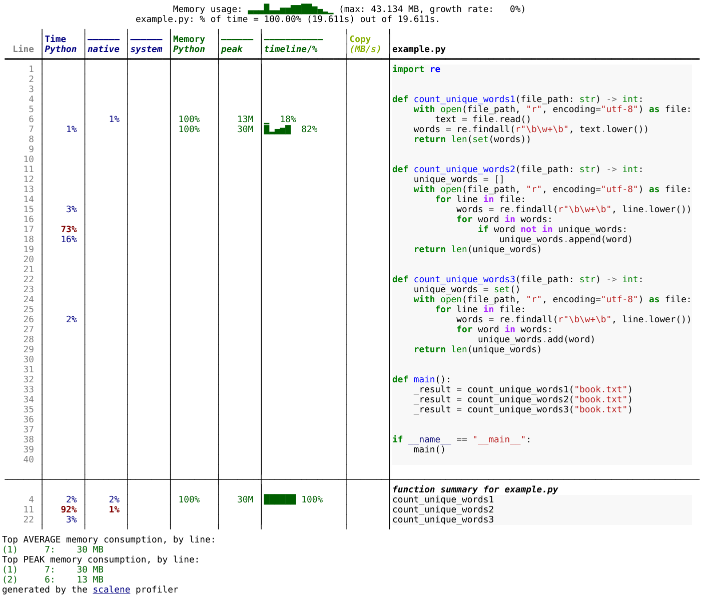 count_unique_words3function uses less memory because it traverses the text file line by line instead of reading the whole file into memory.