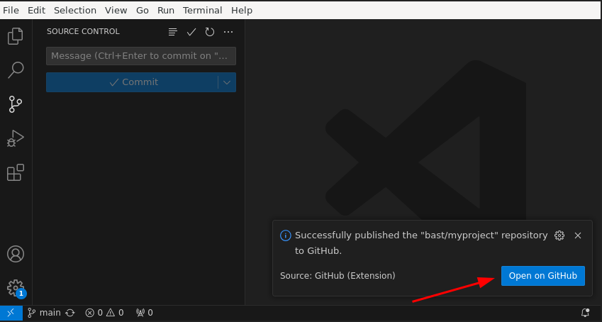 First time you do this you might need to authorize VS Code to access your GitHub account by redirecting you to https://github.com/login/oauth/authorize.